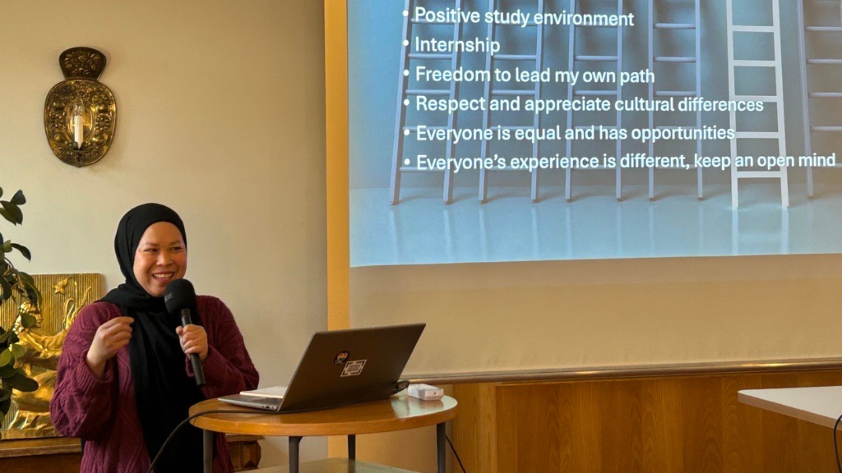 Olen saanut tosi paljon tukea omalla polullani. Ihmiset ovat avoimia, järjestelmä on tasapuolinen ja ilmapiiri opiskeluissa positiivinen. Haastavina hetkinä olen muistuttanut itselleni, että pienikin askel on askel eteenpäin, Oktaviani kertoi.